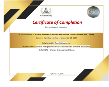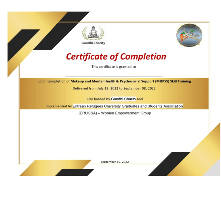 Delivered by professional trainers, the program also includes startup capital to help participants achieve financial independence. By integrating skill-building with mental health support, the project seeks to promote self-reliance, resilience, and sustainable livelihoods for Eritrean refugee women.
